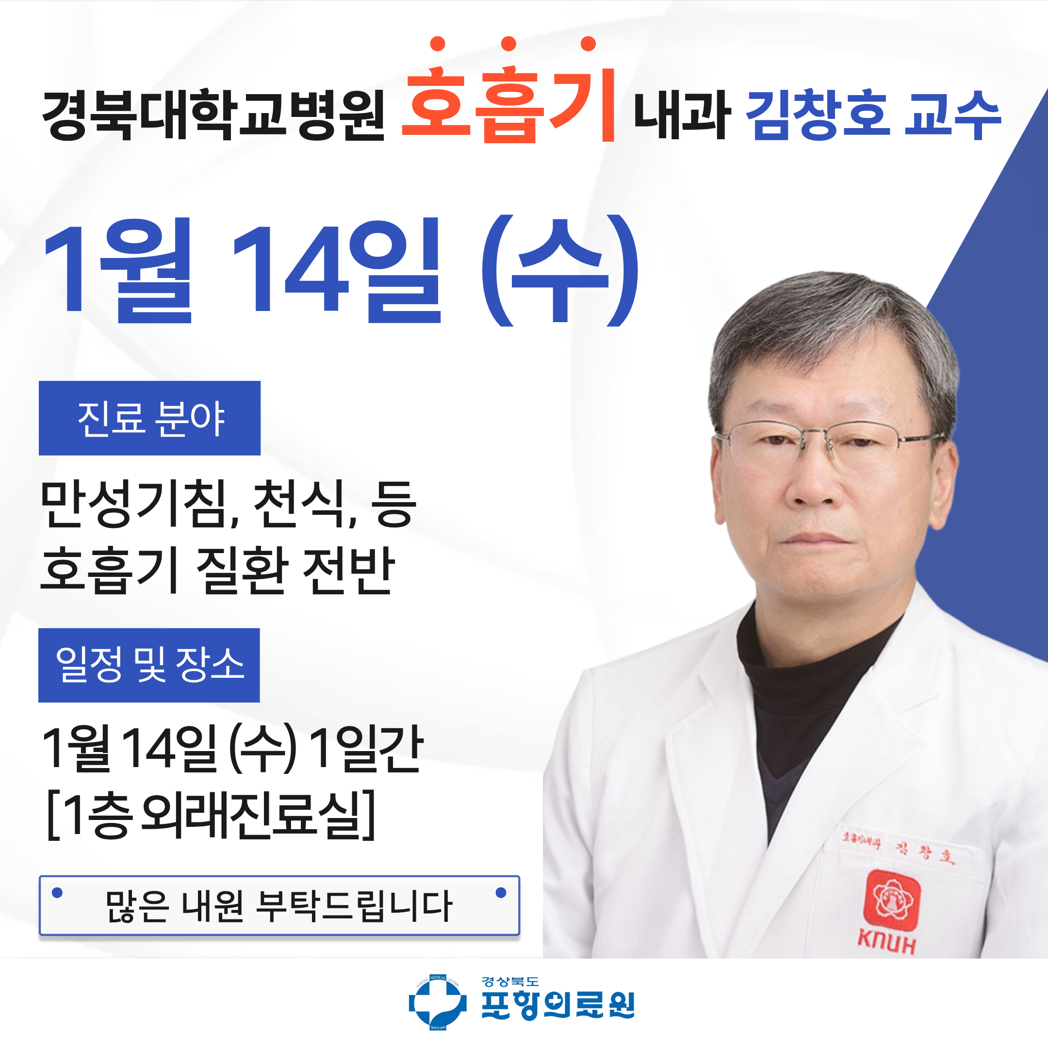 * 각 진료과별 사정에 의해 진료일정 및 접수시간이 변경 될 수 있습니다.